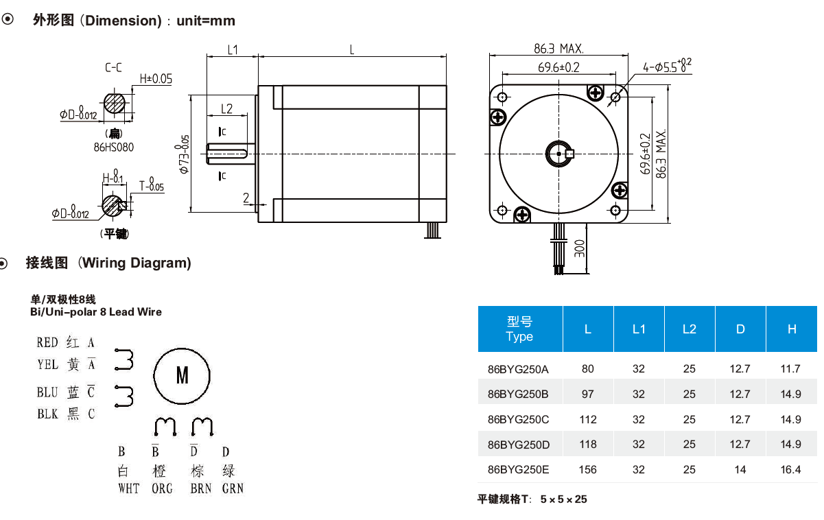 | 86BYG350B-5 | 1.2 | 5 | 60 | 5.6 | 5.5 | 0.83 | 3.21 | 3.52 | 110 |